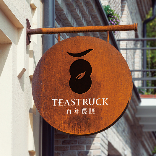 品牌LOGO設計以象徵百年的「⼀〇〇」為核⼼出發,展現長順茶業百年歷史根基與全神貫注的職⼈精神。圓形構圖就像兩⼈對飲的茶杯,寓意圓融和諧。視覺元素延伸交疊成葫蘆形象,象徵吉祥與福氣,傳遞著茶與⼈之間的情感聯繫和溫度。長順Tea Struck以精湛製茶⼯藝和深厚的⽂化底蘊,為每位駐⾜的貴客奉上⼀杯溫暖⼜不燙⼿的好茶,讓每次品茗都成為⼼靈的交流。